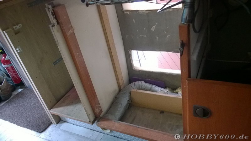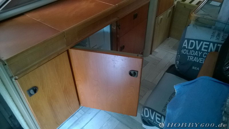 Nach dem Umbau war ich mit der Kühlschranktür ganz zufrieden, aber ….als ich die Tür des Gasflaschen montierte, passte diese nicht mehr.