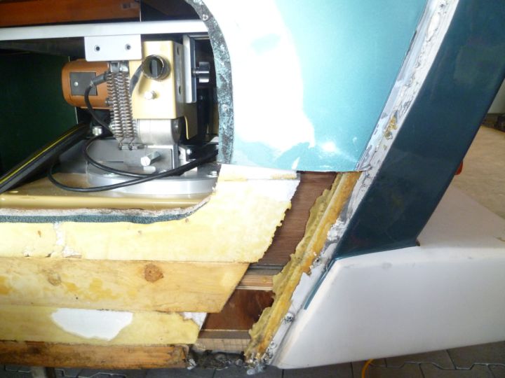 Nach Entfernung des Bleches kamen einige Überraschungen zu Tage, die uns ganz schön geschockt haben. Werksseitig waren einige Bereiche hohl (Bild 9) und mussten mit PU-Schaum ergänzt werden. Ganz wichtig ist jetzt, die Überlappung des Daches zu säubern (wir haben es mit der Flex gemacht), damit dann das Blech wieder gut darunter geschoben werden kann.