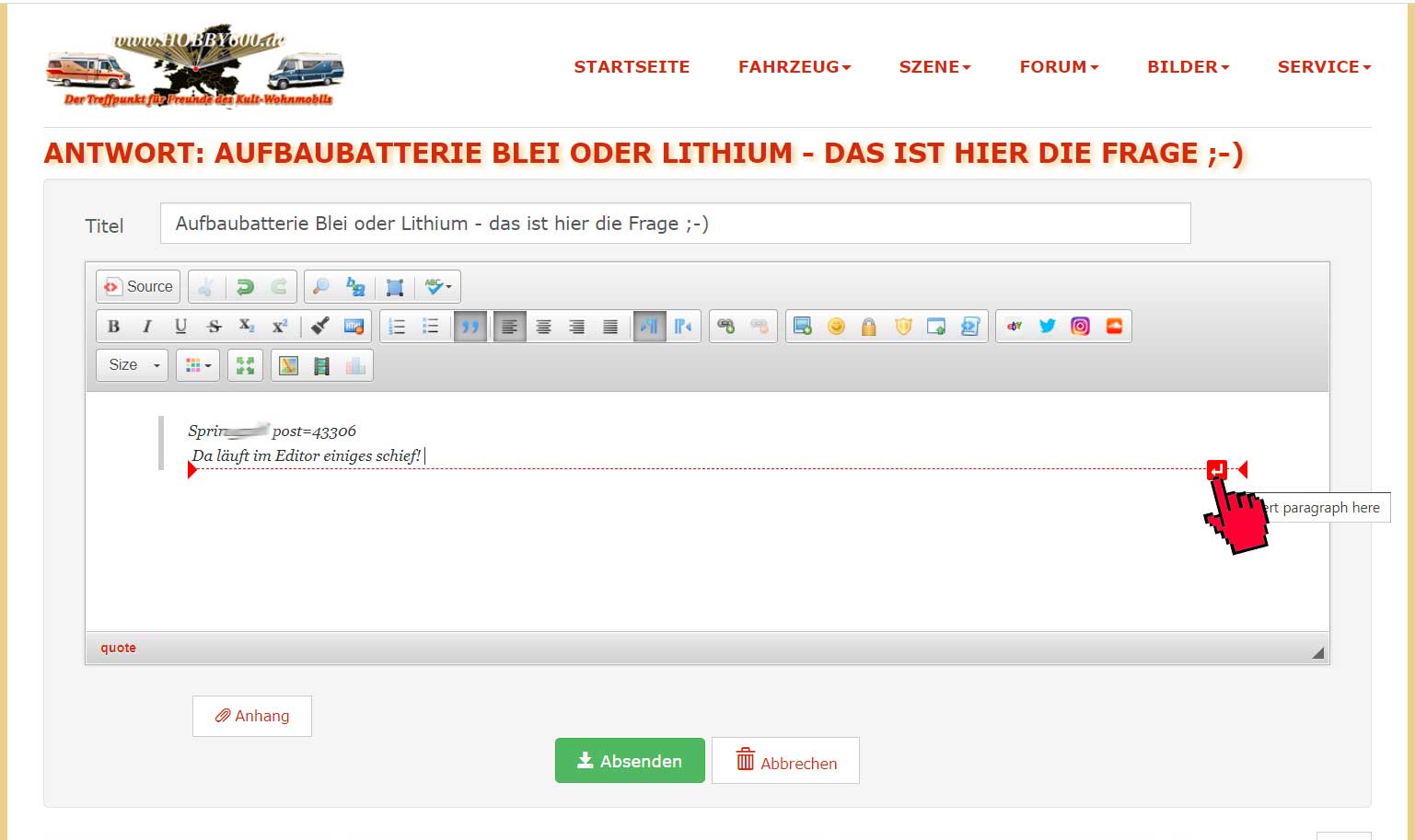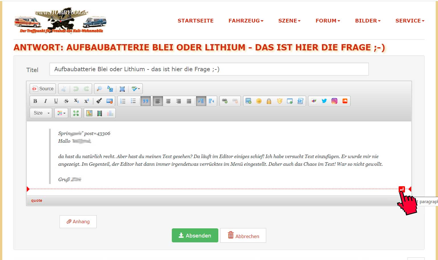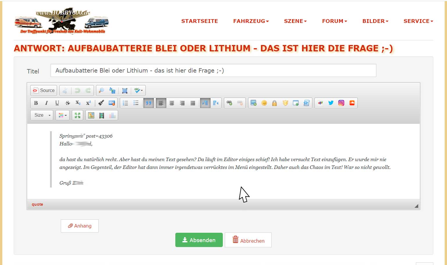 Natürlich kann man der Zitat des Original-Beitrages auch vorher einkürzen, indem man den nicht benötigten Text einfach weglöscht (Bild 6).