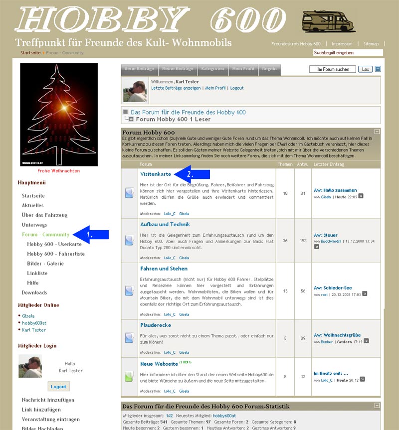 anmeldung-2.jpg Um einen neuen Beitrag ins Forum zu schreiben, musst Du dich zunächst auf der Webseite anmelden. Dazu trägst Du Deinen Benutzernamen und Dein Passwort in das Login- Formular (Bild1.1) und setzt bei dem Kästchen „angemeldet bleiben" (Bild1.2) ein Häkchen. Wenn Du nun auf „Login" klickst, erscheint dort Dein Name und falls vorhanden Dein Benutzerbild (2.3).