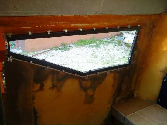 und dann Kopfkratzen, weil ich merke ich baue gerade meine Inneneinrichtung rückwärts aus und muss bevor ich das alles wieder einbaue erst mal die Fensterwand neu beziehen. Um das Fenster herum ist alles wieder schön trocken aber unten hinter dem Warmwasserboiler ist alles weich matschig nass. Ich habs mal fotografiert und schicke die kleine Sauerei mal auf die Netzreise. Aber ich vermute mal das sind typische Stellen die zur Renovierung dieses Fahrzeugs gehören. Hab erst mal ein paar Stunden den Heizlüfter draus gehalten und hoffe, wenn ich diesen Grill zum Boiler außen abdichte, dass es dort trocken bleibt. Also weiter bin ich noch nicht gekommen und bitte an diese Stelle um Daumendrücken.
