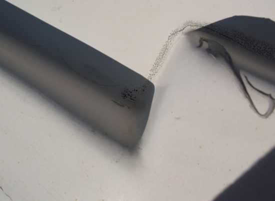 Nicht mal vorher versucht die natürlich nicht dichtende und wahrswcheinlich 2€ billige Baumarktversiegelung zu entfernen. Einfach drüber, nach dem Motto viel hilft viel. Leider ist diese Pampe die ich wohl für mein Schiff nehmen würde, da es eine erheblich steifere Außenhaut als das Dach des Hobbys hat, nicht hierfür geeignet. Die Ausdehnung beider Materialien sind derart unterschiedlich und das GFK Material dazu noch fast starr, dass die Verdingung reißen musste.