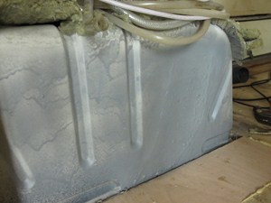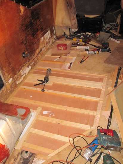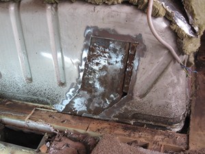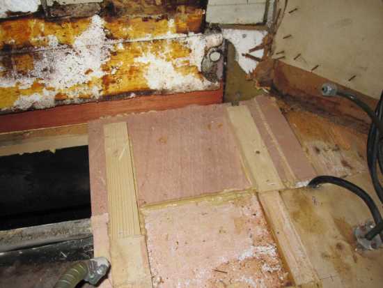Der Fußboden war morsch Teilen Wassertank. Und durch eine fehlerhafte Toilette gab die Sache auch faule gebaut. Es gab keine Dichtungsmittel zwischen dem äußeren Rahmen und der Wand Gebrauch.