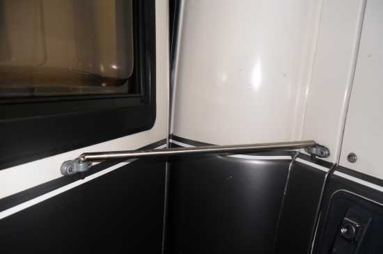 Superlösung! Und wenn du jetzt drin an der Gasschrankaussenwand noch so einen Halter im entsprechenden Abstand anschraubst, dann hast du gleich eine Sicherung, wenn ihr drin schlaft. Kann keiner von draußen die Tür so leicht öffnen.