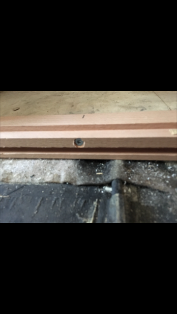 Dann gibt es die 10 mm starke Siebdruckplatte die in die große 10mm starke Nut-Verbindung eingedrückt wird und noch verklebt wurde. Dieses wurde mit 2 Schrauben noch zusätzlich mit den beiden Trägern die von der Fahrzeugkarosse abgehen, verbunden. (Schraubverbindung)