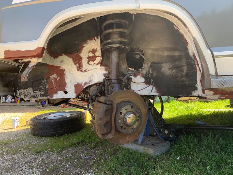 Instand zu setzen waren die hinteren Ecken unten zum Schneller hin auf beiden Seiten, auf der rechten Seite ein Teil des Schwellers zum Rad hin (Dafür habe ich ein Blech gedengelt), oben am Federbeindom nach aussen hin, auf beiden Seiten, die Ecken vorne im Radhaus vorne, links n bisschen mehr ;) und einige diverse Stellen.. Einige Stellen waren schonmal recht lieblos repariert worden, wobei der Rückbau dann auch nervt. Bei der Rostbeseitigung habe ich, wie hinten, auf Ovatrolöl, Brando Burrux und Fertan gesetzt. Zur Anwendung hatte ich ja mal was geschrieben, ausserdem gibt es zu jedem Produkt beim Korrosionsschutz Depot eine kleine Broschüre (auch online), wo alles Beschrieben wird. Sehr Interessant!