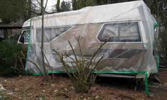 Wenn es so ist, das Winni das Dach soweit abziehen und das Styropor rausziehen kann, wäre das die naheliegendste Lösung. Leider kann ich unter der Folie keine Markise erkennen.