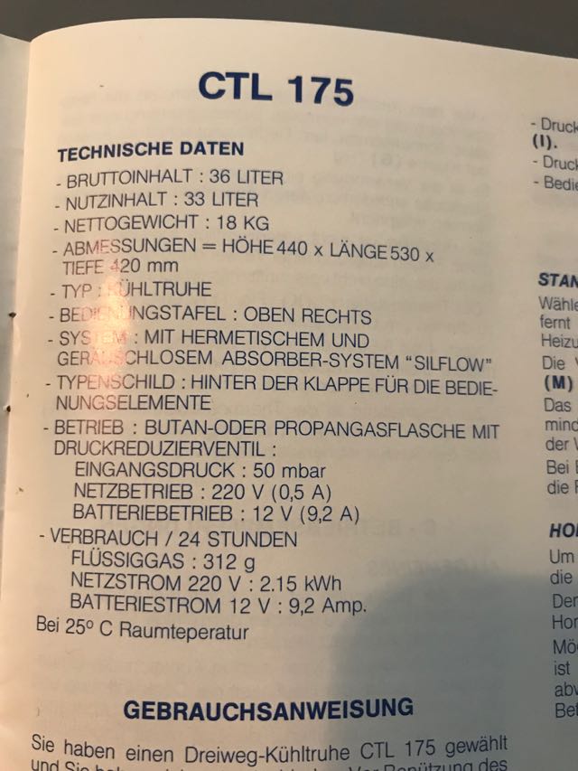 Nachsatz: Ich habe mal nach der Kühlbox gegoogelt und dabei habe ich bei ebay-Kleinanzeigen ein Typenschild gefunden. Demnach hat die Box bei Propangas einen Betriebsdruck von 37 mbar!