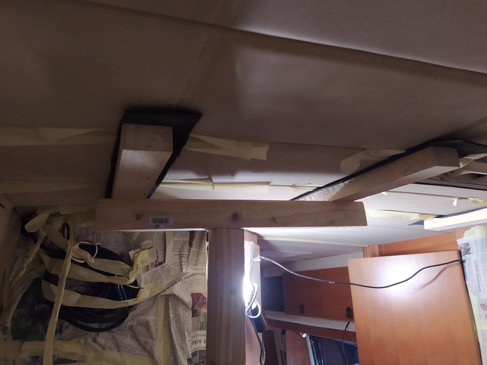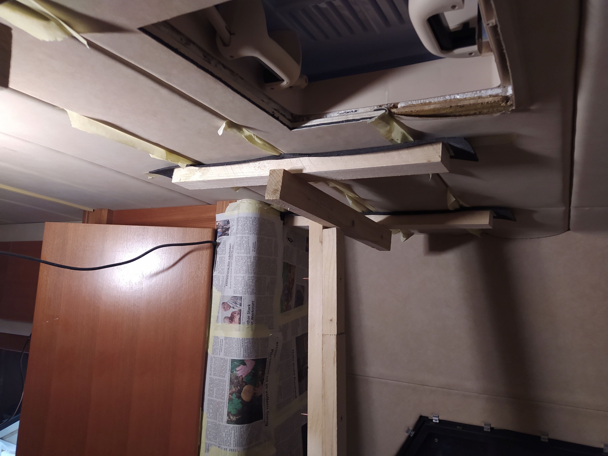 Wir haben versucht die hohe Klebekraft des Caravanklebers zu nutzen. Ob es funktioniert hat, sehen wir morgen.