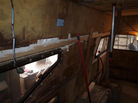 Vorher hatte ich alles mit senkrechten Leisten gesichert, bevor ich das ganze verfaulte Holz entfernt habe. Werde jetzt noch das Sperrholz ein wenig weiter entfernen, denke so an 20cm ober und unterhalb der Leisten und werde dort neues mit dem Caravankleber reinkleben, ich denke das ich dann wieder einen vernüftigen Kraftschluss herstelle.