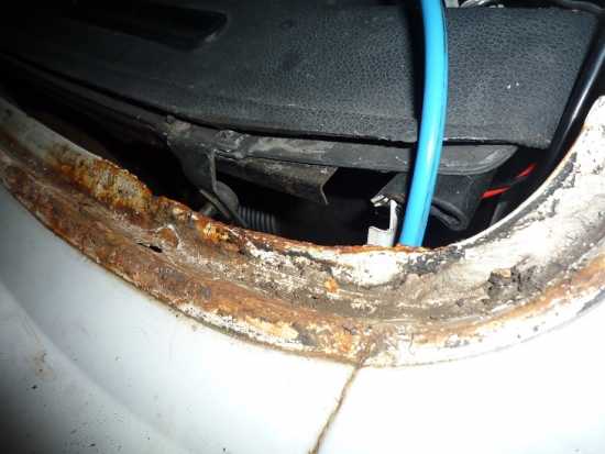 habe meine kaputte Frontscheibe herausgenommen und dabei gleich mal die Wasserablauflöcher angesehen. Die sind wohl im Laufe der Zeit etwas groß geworden :ironie: .