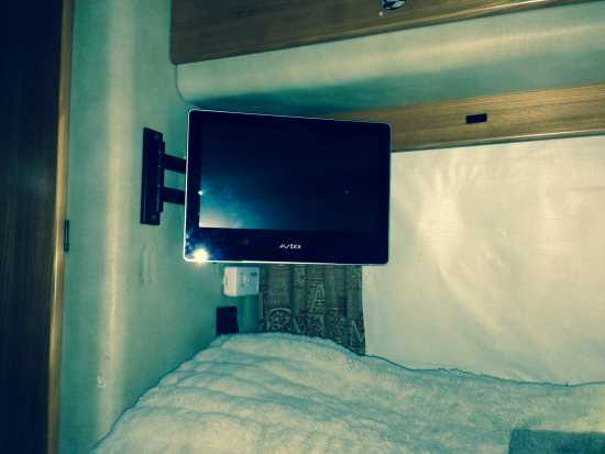 I had an older type heater and I bought a newer type case so modernise it a bit. A tv for the bedroom and lounge, both have satellite links for when I fit the satellite dish but they work brilliantly with the existing aerial. I turned the seat boxes around as they're much more usable that way. I also fitted a swivel device to the drivers seat. I cut the box down welded it back up and welded the handbrake in a lower position on the other side of the box due to moving it around. One picture shows a PS2 fitted for rainy days - they only run on 8.5v if memory serves correct. There's a picture of the electric fridge; the solar panels keeps it running 24/7.