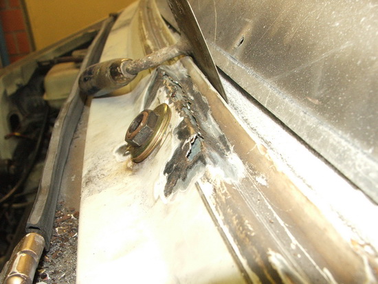 19 Nov. 2014 20:08Das sieht auf ersten Blick ein wenig schlimm aus läßt sich aber reparieren. Ich würde die verrosteten Stellen bis zum gesunden Blech vorsichtig ausschneiden und neues Blech einschweissen. Vorher aber das Loch für den Scheibenwischer bohren.