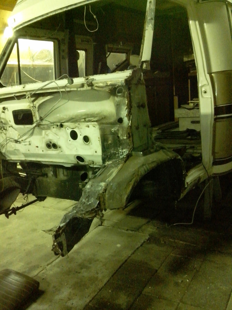 Es geht hier um die reparatur einen alten sehr schlecht reparierten schaden, immer wieder hatte ich dinge gesehen die nicht recht stimten. So wie das frontfenster rahmen, das war links um 1 cm. hoher als rechts, das linker türfenster war nicht gut schliesbar und unter die wagen waren auch einige schweitz arbeiten getan, aber schlecht.