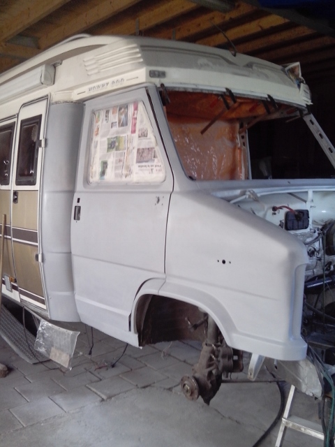 Doch habe ich das wohnteil fast wieder fertig bis auf einige kleine dinge, wie einige kabel anschlusse, das brett neben der einstieg und auch das bcc sol noch eingebaut werden. Auch das fahrerhaus ist noch fast lehr, und damit will ich warten bis die innenseite des tür- und fensterrahmen neu lackiert sind. Auch habe ich die kabel der ruckleuchten auf der boden repariert, einige waren fast durch am wagen boden, und gleich extra issoliert. So auch mit einige kabel im motorraum.