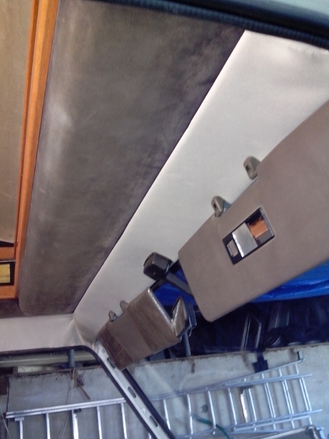 Nach einbau der winschutzscheibe hatte ich noch die stoffverkleidung unterhalb des BCC zur scheibe und türen neu zu machen, die alte waren weit gehend hin durch wassereintrit durch das lose dach, na ja ist auch wieder gelungen.