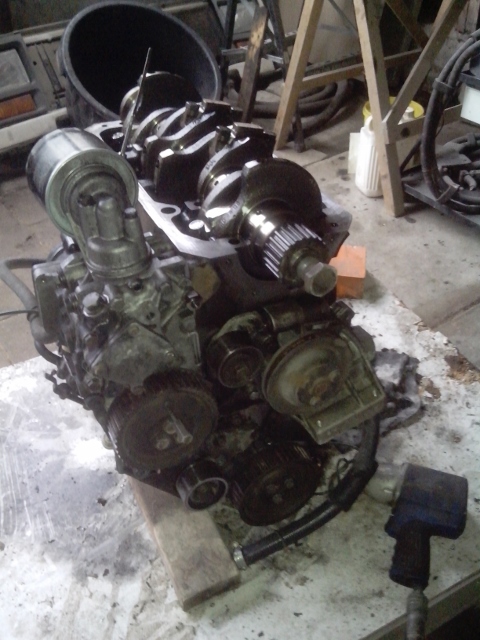 Dan war es zeit fur die motor, die dichtung von das kurbelgehause solte erneuert werden ebenso wie die kurbelwellendichtung hinter das schwungrad. Durch das demontieren des kurbelgehause kamen die haubtlager des kurbelwellen auch frei und die waren mir zu weit hin zum wieder gebrauch, also neu bestellen gleich mit einen neuen dichtungssatz.