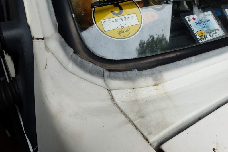 Natürlich gibt es theoretisch auch noch andere Möglichkeiten des Wassereintritts. Dachreling ist möglich, allerdings müssten die Dachpanele von innen dann auch Nass sein. Positionsleuchten sind möglich, dann würde man es in der A-Säule sehen. Es ist auch möglich, dass das Dach arbeitet und so Wasser von oben hinter die Scheibendichtung kommt und dann darin runter läuft. Aber dann muss es ja irgendwie in den Innenraum gelangen und dann sind wir wieder beim durchgerosteten Scheibenrahmen. Ich habe auch schon gehabt, dass ein nicht mit "Sack" verlegtes Kabel einer Spiegelheizung dafür sorgte, dass Wasser von außen nach innen läuft.