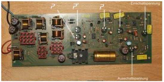 Klaus hatte ja die Konsole vorn draußen und auch am Poti (Ein-und Ausschaltspannung) gestellt. Nun fragen wir uns allerdings, wofür die Anderen zuständig sind. Hat da jemand eine Ahnung? Siehe angehängtes Foto.