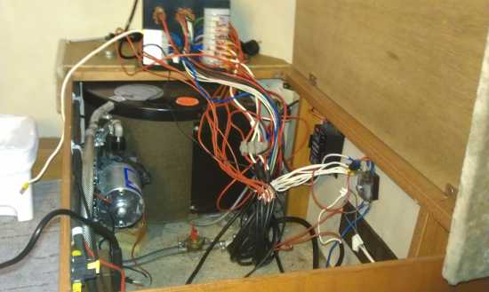 Dann habe ich heute noch das CP rausgebaut und die Kabel mal etwas entwirrt (250 Kabelbinder weggemacht). Außerdem habe ich unter der Bank ausgeräumt. D.h. altes "Ladegerät" und Batterie rausgestellt und auch Kabelbinder entfernt. So konnte ich immerhin mal ein Kabel zu seinem Ende verfolgen. Ein anderes suche ich noch. Dem werde ich aber sicherlich morgen vollends auf die Spur kommen. Ich hab noch a bißerl fotografiert. Muß ich aber noch sichten und werde sie dann hierherbringen.
