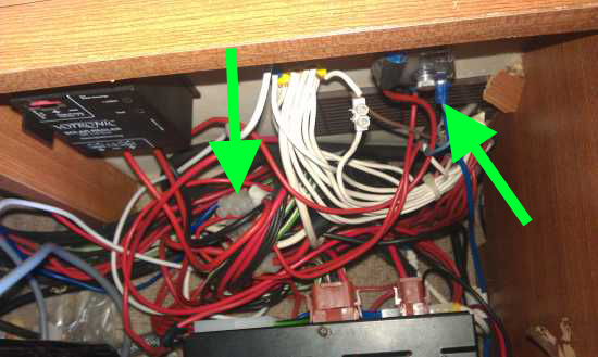 Gisela hat annähernd genauso viel Kabel unter dem Sitz :laugh: . Zwei Dinge sind mir aufgefallen. Ich habe sie mit grünen Pfeilen versehen. Die müsstest Du noch einmal genauer ablichten. (Schick mir die bilder dann auch bitte unverkleinert per Mail).