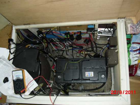 Wilfried had richt, man kan so viele sachen gamacht haben. villeicht sind die condensatoren vor eine ladegerät zum abvlakken das 12V und die relais vor das wahlen von laden von startbatterie und 2de batterie. das dritte relais kunte gebraucht sein automatisch die 220V steckdosen von womo von 12V-220V omvormer auf die ausen steckdose um zu schalten wan dort 220V angeslossen wurde.