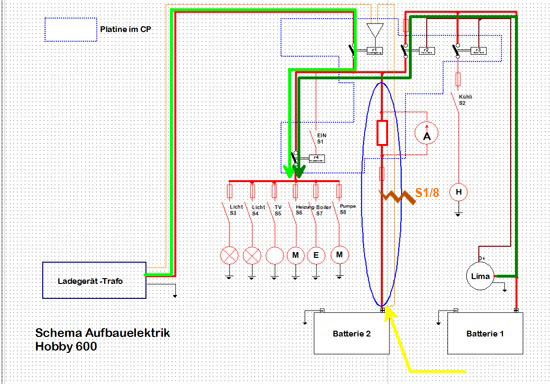 Dem war aber nicht so. Genau dieser PIN_8 liegt in meiner blauen Ellipse und hat die Einspeisung der Verbraucher über die Batterie verhindert.