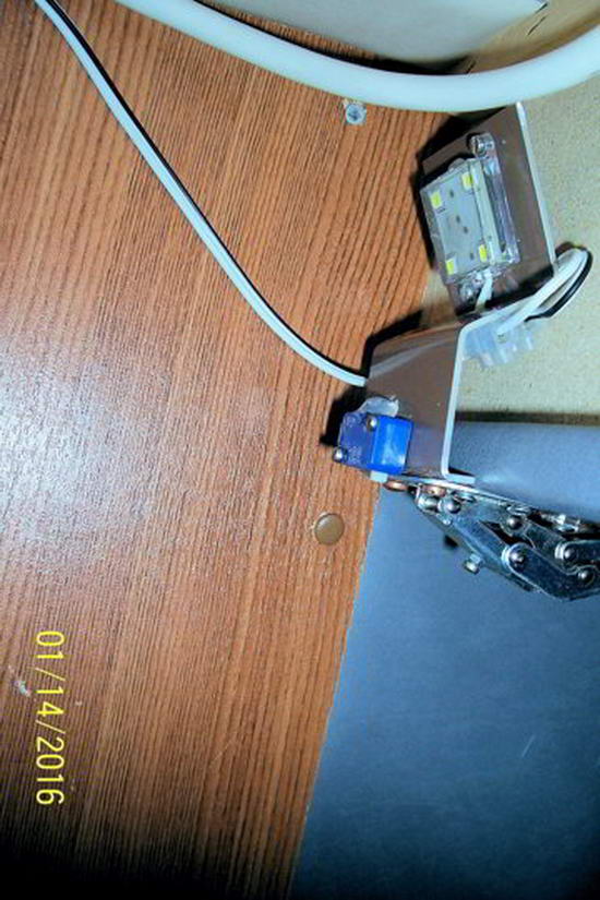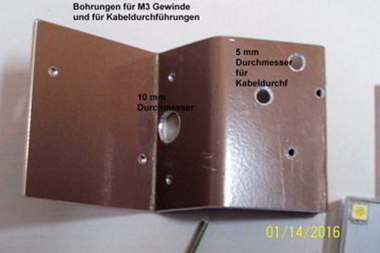 Die Bohrungen für LED Modul und Schalter werden vom Bauteil abgenommen und 2,5 mm gebohrt.