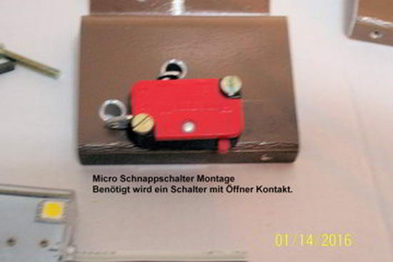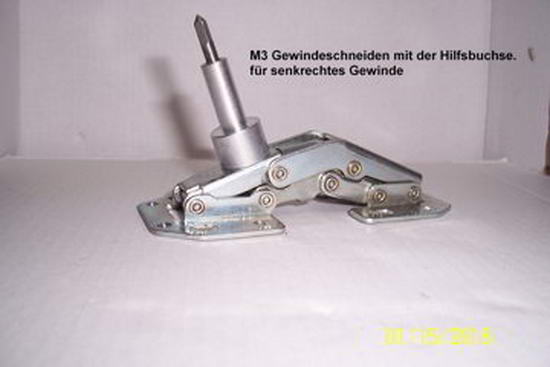 Die Schraube für den Schalter wird auf dem Scharnier mit der Gravur „2000 MIGNON“ an der mittleren „Null“ mit 2,5 mm gebohrt und nach Anweisung mit Hilfsbuchse ein M 3 Gewinde geschnitten.