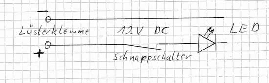 Nachdem alle Bohrungen bzw. Gewinde geschnitten und die Teile montiert sind wird nach dem einfachen Plan die Verkabelung ausgeführt: