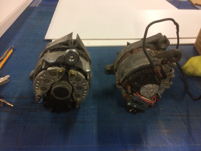der Alternator auf der rechten Seite (der älteste), ist derjenige, den ich auf einem Schrottplatz gefunden habe, weiß jemand, wie die Kabel angeschlossen sind?, die Verbindungen scheinen anders.