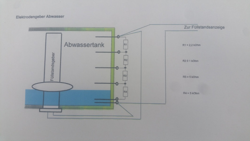 Neben dem Geber hat mein Frischwassertank auch noch die Reihe Elektroden mit einer Widerstandskaskade an der Seite zur Außenwand, so das ich leider dort nicht hinsehen kann ohne den Tank aus zu bauen. Dies System ist zum Geber parallel geschaltet so das man ohne Wasserspiele nicht so einfach die Anzeige kontrollieren kann. Das gleiche System wie im Abwassertank, dort ist parallel zum Geber auch eine Reihe Elektroden mit einer Wiederstandskaskade eingebaut. Ich dachte schon das hat einer der 8 Vorbesitzer verbastelt weil nichts funktionierte und bei eueren Fahrzeugen anscheinend im Abwassertank nur die Elektroden verbaut sind und im Frischwassertank nur der Geber, oder täusche ich mich da?