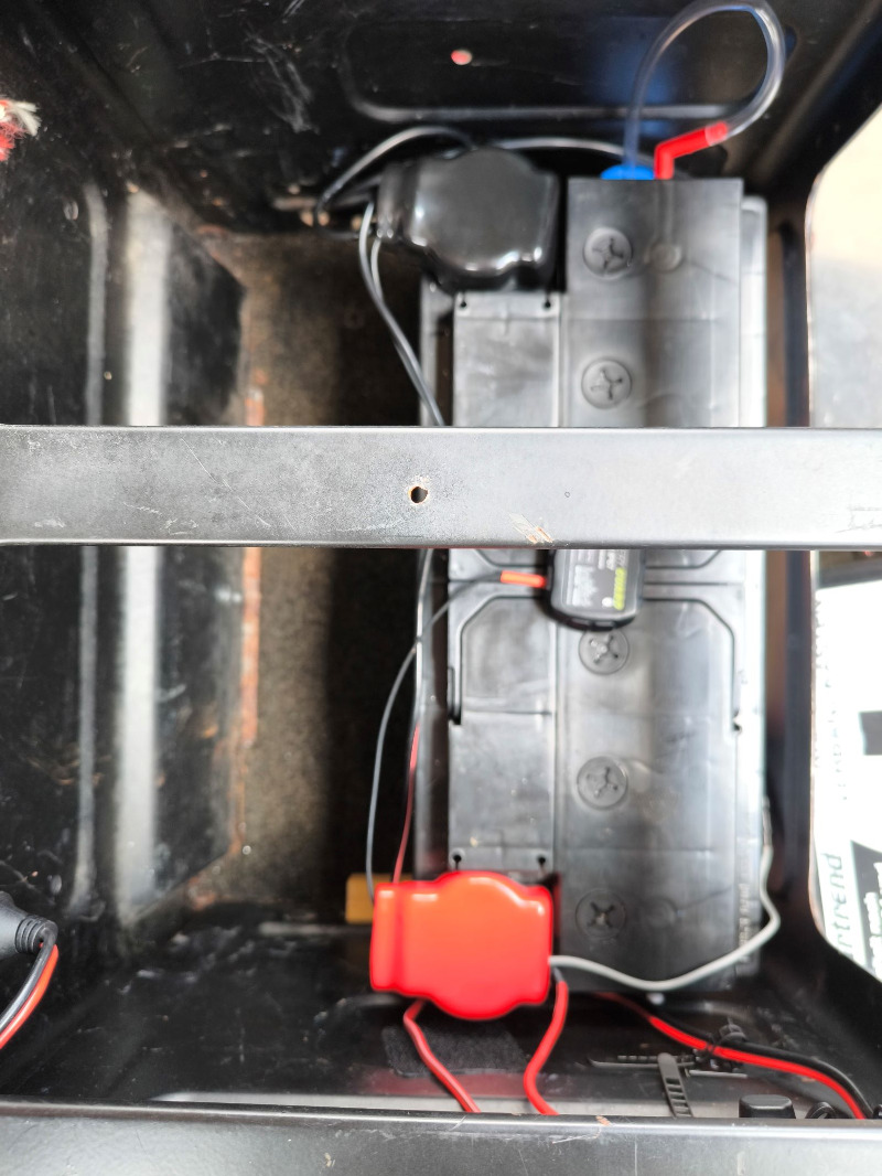 was (soweit ich das verstehe) von der Aufbaubatterei in den schwarzen Carmer EBL an der Postion B2 CSC gehen müßteIch finde das nicht und das verstehe ich nicht, weil wie gesagt 12 Volt beetreib funktioniert.Ich habe mal eine Skizze gemacht was ich an den Aufbaubatterien angeschlossen habe.Anbei auch noch 2 Bilder wie es aktuell bei mir unter der Sitzbank hinter dem Fahrersitzt aussieht.Das blaue Teil ist das Victon Ladegerät was auf dem schwarzen Carmewr EBL liegt (wird entweder noch woanders verlegt oder vernünftig befestigt)Die Kabel und Kabelverbindungen unter der Stizbank müssen auch noch "aufgefrischt" werden.