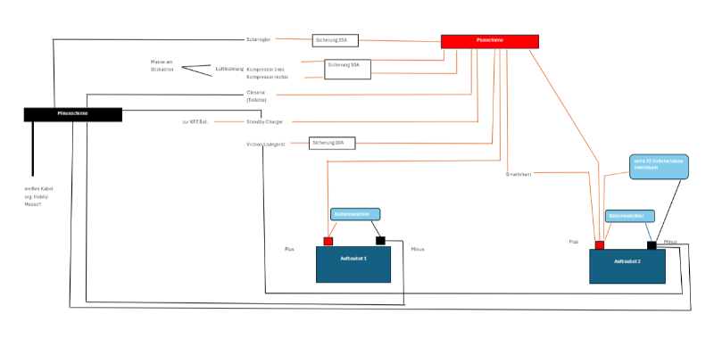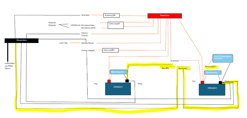 Ich hoffe, bei der 12V-Steckdose an der rechten Batterie hast Du nur vergessen eine Sicherung rein zu zeichnen.