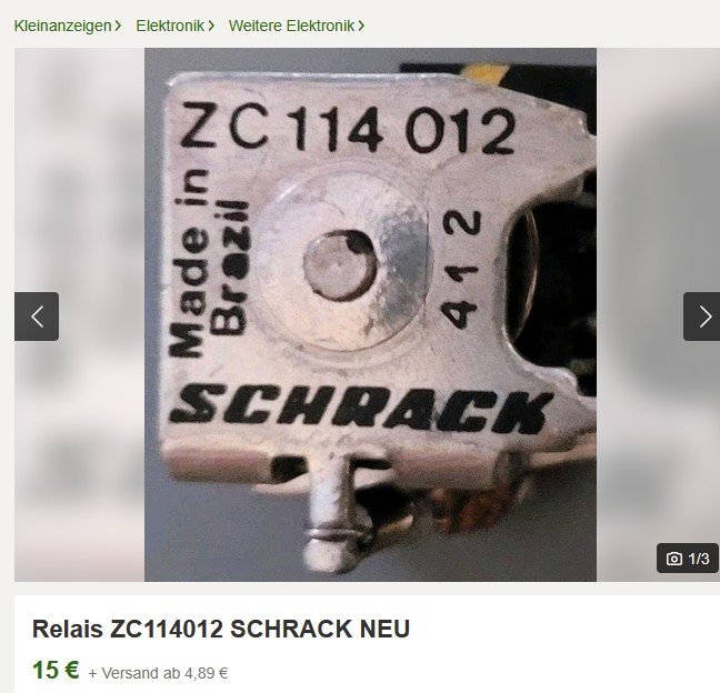 Servus, ich habe heut in der Rampe bei Kleinanzeigen ein Passendes Relais gefunden, nur als Beispiel, unter "Relais ZC114012 Schrack Neu" in Pinneberg.Der hat wohl mehere.Mein Elektronik-Spezi, der OTTO, hat mir allerdings gesagt, daß es ganz normal auch vorkommt, daß die "mechanischen Relais" nach einer gewissen Zeit auch "verschleißen", was heißt, daß sich an den Schaltkontaktflächen Ablagerungen und Einbrände bilden (wie früher an den Unterbrechungskontakten bei den alten Benzienern die "Pickel").Mein Spezi rät dazu,, bevor man alles zerlägt und umbaut, den Versuch zu machen, mit einem feinen Schleifpapier/Schmirgelpapier 320 X, besser eher feiner bis 800er, mit Gefühl zwischen den Kontaktflächen diese abzuschleifen. Dadurch wird der Abstand der Kontaktflächen wieder so groß, wie ursprünglich geplant und der "Krater-Einschlag" Effekt geglättet.Und dann sollte das Relais wieder (wenigstens besser) funktionieren.Sicherlich, ist das ein Versuch, aber auslöten und zerlegen des Laderätes ist wesentlich aufwendiger. Falls Du einen Elektiker/Elektroniker mit einem Konto bei Völkner oder Conrad kennst, kann der sicherlich auch helfen, um ein neues Relais zu besorgen, falls Du´s nicht selbst machen möchtest.Ich hoffe, Die etwas weiter geholfen zu haben. mein Plan ist, die Flächen zu Schleifen/polieren, die Sicherungen samt Halterungen auf den Stand Flachsicherungshalter zu erneuern.Und dann reisen wir weiter - bis zur nächsten Überraschung. - war ein Witz. Ich hätts gern zuverlässig repariert.Viel Erfolg, und wenn was fehlt, immer wieder gern - fragen kostet Nichts.Viele Grüße aus dem Allgäu, Michael