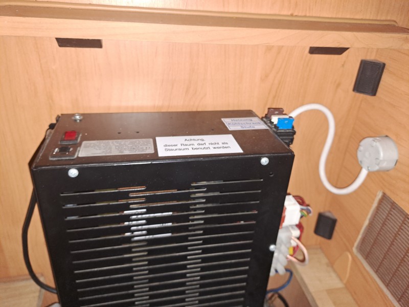 Die vorhandene Originalelektrik ist im Prinzip die gleiche wie in den altene 280/290ern mit dem alten Ladegerät und den Klemmleisten für die Verbraucher im Elektroabteil in der hinteren Sitzbank.