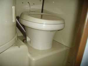Geräuscharme Toilette mit Umwälzanlage aus amerikanischer Entwicklung für (Reise-)Busse, verstopft nie. Kein separater Fäkalientank und keine externe Wasserversorgung erforderlich. Toilette wird mit Wasser und Sanitärzusätzen gefüllt. Die Flüssigkeit wird über Pumpen umgewälzt, und die Fäkalien werden über eine Doppelfilteranlage gesammelt. Fäkalienablass über eine Absperrvorrichtung an der Fahrzeugunterseite.