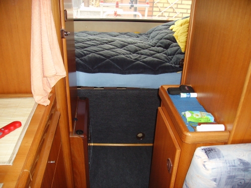 Und wenn dann das Bett gemacht ist, kann man trotzdem unten Schuhe usw. verstauen, damit nichts im Gang herumliegt.