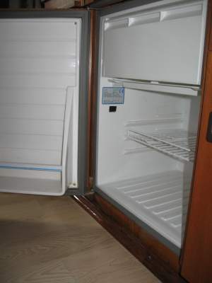hat ja ein bischen gedauert, aber hier nun die Daten von unserem Kühlschrank. Es handelt sich um einen Waeco Kompressor-Kühlschrank Coolmatic MDC-65 mit folgenden Maßen: B 485 mm x H 673 mm x T 475 mm . Technische Daten: Volumen: 64 l Gefrierfach: 10 l Gewicht: 20 kg Leistungsaufnahme: ca 45 Watt Stromverbrauch: ca 1,1 - 1,45 Ah/h, 12 / 24 Volt Anschluß. Unter Campingplus.de findest Du ihn unter obiger Bezeichnung. Preis 773 Euro. Der Kühlschrank passt gut in die Küchenzeile an den Platz des anderen.