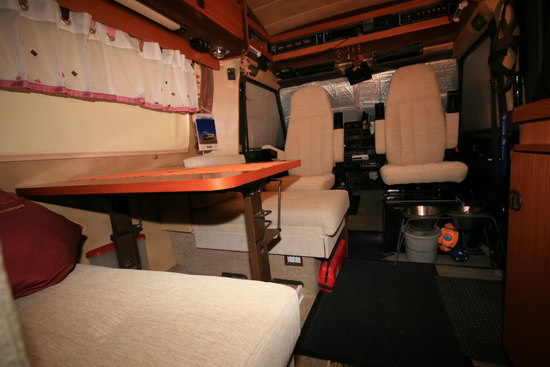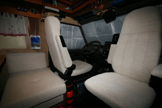 Na ja, nicht ganz: Die Sitze im Führerhaus wurden neu bezogen und in der Sitzgruppe wurden die Schaumstoffkissen erneuert und ebenfalls neu bezogen. Das Ergebnis seht Ihr hier: