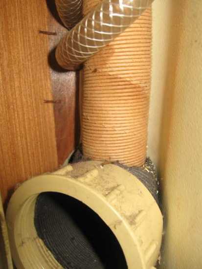Vom Trumavent verläuft der 65 mm Heizungsschlauch unterm Bett bis zum Bad und mündet dort in den Ausströmer. Das müßte bei Dir wohl ähnlich sein, und im Bad für heiße Füße sorgen. Wie auf dem Bild ersichtlich, ist der Abzweig für den kleineren Heizungsschlauch direkt am Auströmer und führt dann hoch in den Badezimmerschrank und dann durch die Trennwand in den Wohnraum. Dieser Schlauch ist Herstellerseitig alle paar Zentimeter eingeschnitten um die Warme Luft abzugeben. Da das aber erst am Luftausströmer im Wohnraum passieren soll, habe ich diese Öffnungen verklebt um soviel warme Luft wie möglich nach vorne zu transportieren. Das Ergebnis ist noch besser, wenn der Luftaustritt im Bad geschlossen ist.