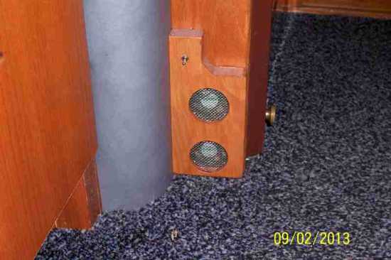 Die normale Holzverkleidung mit zwei größeren Bohrungen versehen und von innen festgeschraubt.