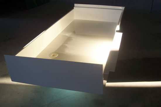 Die Duschwanne und die Deckenverkleidung werde ich aus Aluminium und Edelstahl herstellen. Die meisten Wandverkleidungen können wieder verwendet werden.