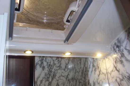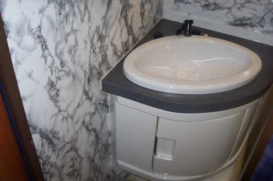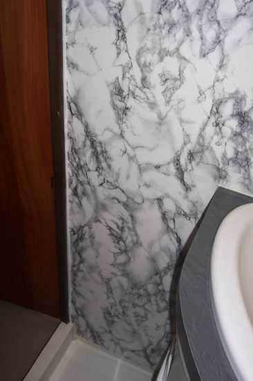 Die Badvergrößerung ist weitgehend abgeschlossen.Da ich einen Wasserschaden hatte war eine Sanierung sowieso notwendig. Zur Vergrößerung habe ich die linke Wand und die Türecke ausgebaut.Die Wand rechts neben der Tür habe ich um 6 cm gekürzt,bis zu dem Bereich,wo die 45° Schräge anfängt. Die Bodenwanne mit der Radkastenverkleidung habe ich ausgebaut und die Bodenwanne in ca. 4 cm Höhe von der Radkastenverkleidung abgeschnitten.Die Ecken mit Alublech verstärkt und mit GFK laminiert und gespachtelt.Anschließend mit Acryl-Lack lackiert. Die neue Duschwanne habe ich aus 1,5 mm Edelstahlblech aus einem Stück angefertigt und an den Ecken verschweißt.Anschließend zwei mal pulverbeschichtet. Den Wasserablauf habe ich an die alte Stelle gesetzt.Als erstes wird die Bodenwanne eingebaut.Darüber wird dann die geänderte Radkastenverkleidung gestülpt so das sie 6 cm überlappt.Für die eine große Wand habe ich mir eine 3mm Kunststoffplatte vom Schildermacher geholt und sie mit Decefix beklebt.Die Kunststoffauskleidungen gehen auch unten über die Bodenwanne.Die Rückwand zum WC habe ich aus 2,5 mm Alu hergestellt und pulverbeschichtet,anschließend eingeklebt.In der Decke war jetzt Platz für eine 40er Dachluke. Die Deckenverkleidung habe ich aus 1,5mm halbhartem Alublech hergestellt.Sie ist komplett aus einem Stück.Man hat jetzt deutlich mehr platz am Waschtisch, und das duschen sollte jetzt auch möglich sein.Die Tür habe ich ohne Veränderungen wieder eingebaut. Um sie beim Duschen vor Feuchtigkeit zu schützen,kommt in die Ecke neben der Tür ein Springrollo 175x60 cm was man beim duschen vor die Tür zieht.Um ins Heckbett zu kommen, bedarf es etwas mehr Sportlichkeit.Man hat durch den Umbau aber auch eine schöne Kuschlecke dazugewonnen.