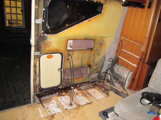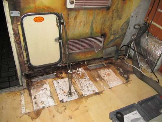 Dass ich im Bereich des Türrahmens (Aufbautür) etwas machen musste, wusste ich, aber es ist doch mehr als befürchtet.