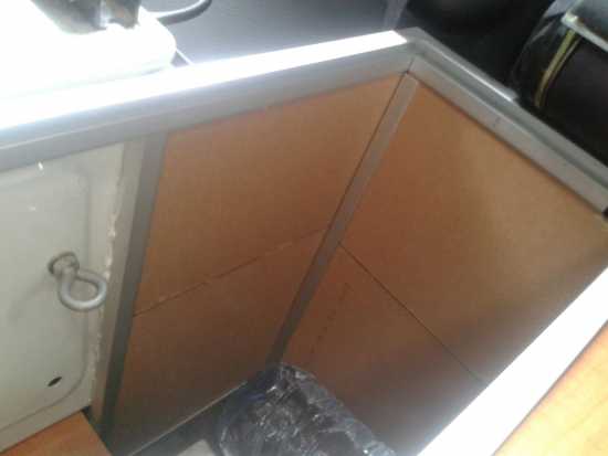 Dabei habe ich auch, auf Deinen Wunsch noch ein paar Detailaufnahmen gemacht. Ich hoffe ich man kann darauf mehr erkennen. Der Rahmen aus Alu Profilen habe ich mit Montagekleber an den Sitzkonsolen befestigt, genauso die Wände in den. Alu Profilen. Diese habe ich aus Laminat Dielen geschnitten. Also meine Frau ist zufrieden, die Fächer auf der Beifahrerseite kann Sie für die Hundeleinen etc.nutzen und auf der Fahrerseite kann ich das Fach nutzen mit, naja ich glaub das kann man sehen.