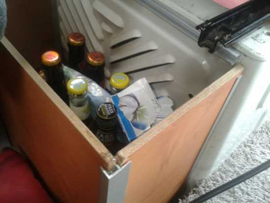 da man ja bekanntlich nicht genug Stauraum haben kann, hier von mir meine Lösung. Da wir ja auch noch zwei Fellnasen bei unseren Reisen dabei haben musste auch eine Stellmöglichkeit für den Waseernapf her, der nicht im Weg steht und bei der Fahrt befüllt bleiben kann. Noch einen positiven Nebeneffekt ergibt sich auch, die Zugluft im Bodenbereich ist weitestgehend verschwunden. Naja..und uns gefällt es auch noch :daumen2: