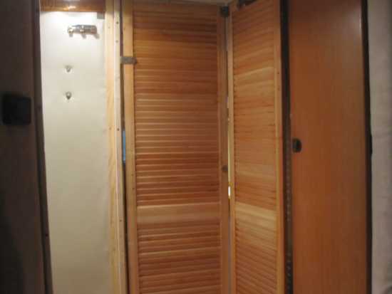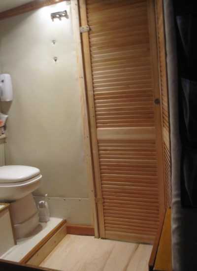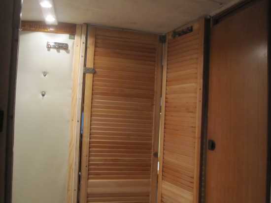 Nach einigen bzw. vielen Versuchen kam ich auf die Lösung der 2 in der Breite unterschiedlichen Lamellentüren wobei ich auch die ursprüngliche Form des Bades beibehalten konnte und mir nicht die Originaltür im Wege ist wobei auch die Gewichtsersparnis wesentlich bei mir für diese Version letztendlich eine Rolle spielte.