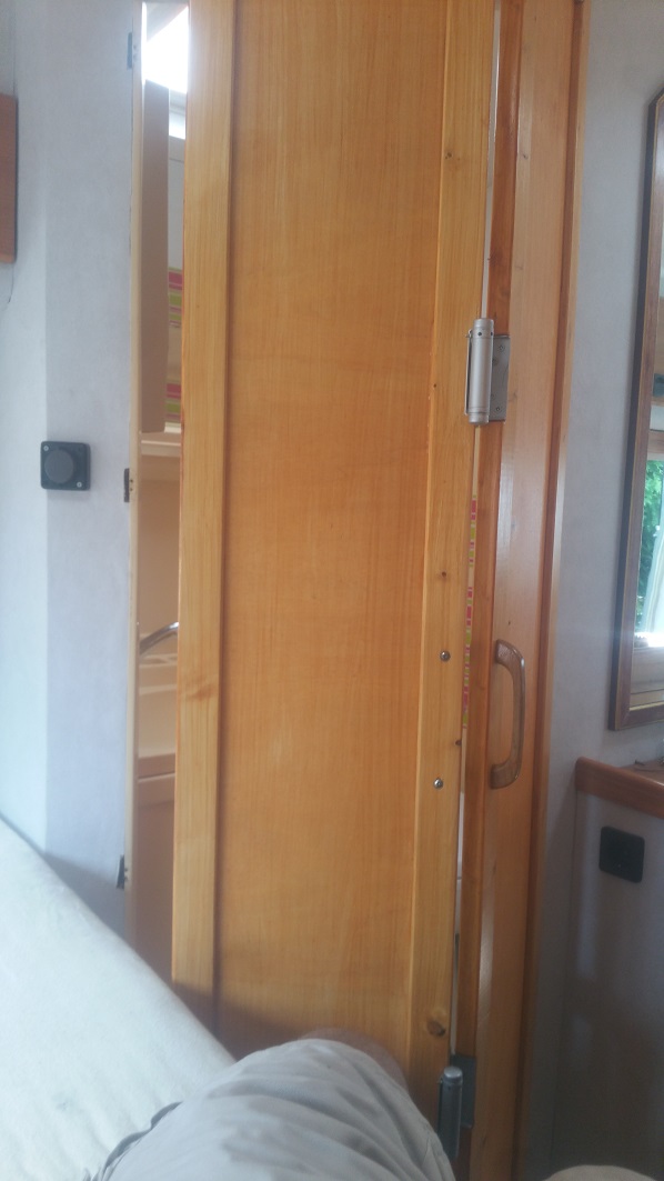 Diese Tür war schnell eingebaut und ist wunderbar einfach zu bedienen, zum Schließen wird die Tür einfach in der Mitte etwas eingeklappt und geht dann einfach am Bett vorbei.