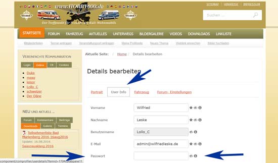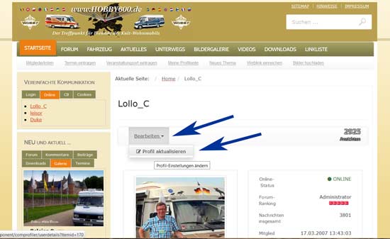 Forum --> Hilfe --> Benutzerprofil -->